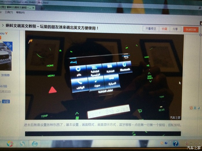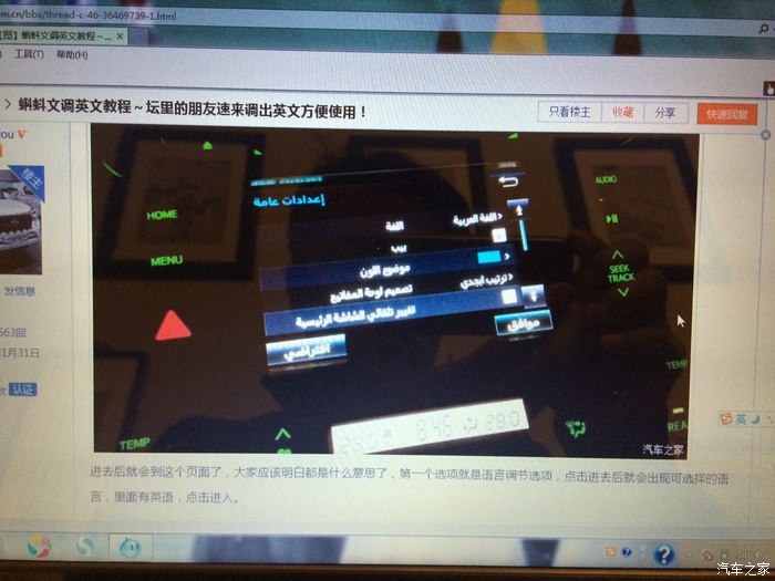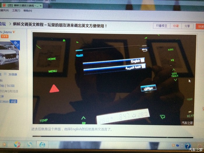 原车没有导航,跟销售公司谈价1000元,加装导航加倒车影像。事实证明,没有换掉原车的屏幕是正确的,导航只是加了一个模块,所以原车的音响效果得以保留。我原先的途观,因为把整个屏幕都换了,结果收音机的效果大打折扣!所以,吃一堑长一智,在这里正好体现!另外,导航根据论坛的介绍可以改成英文,在此把图片也发一下!