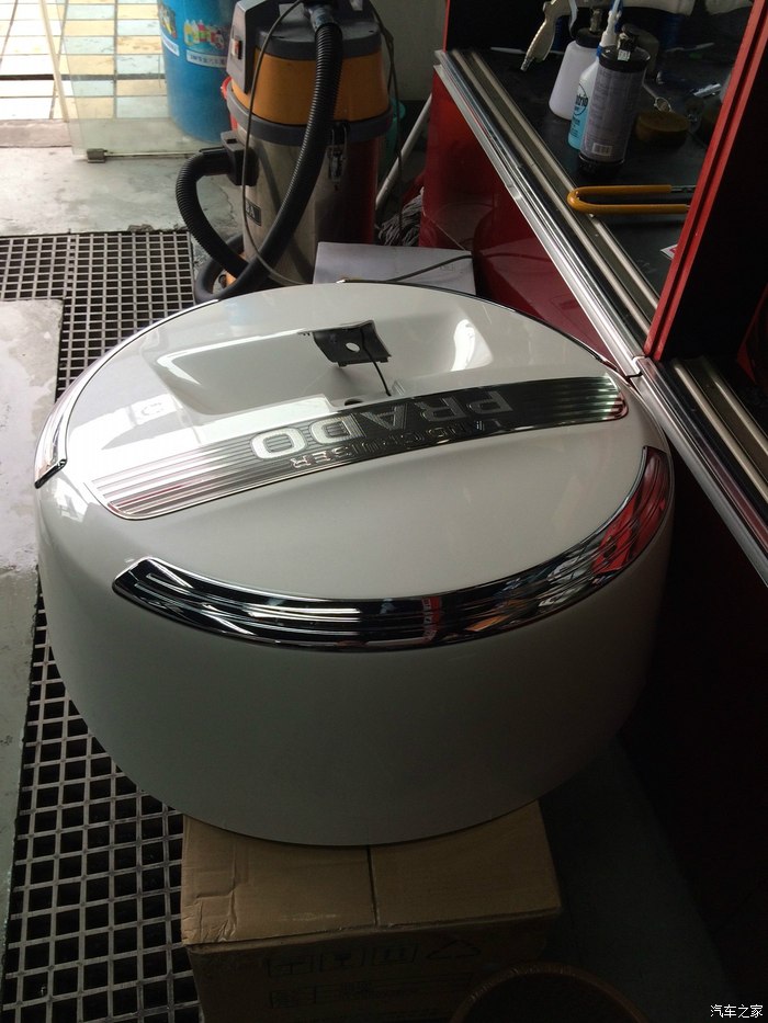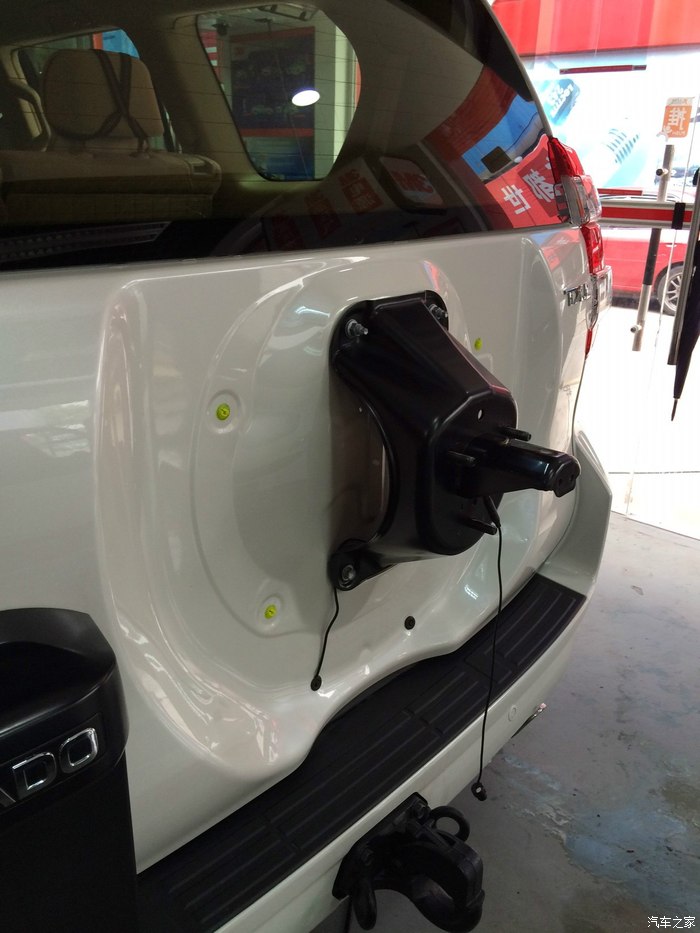 前面我说了,选择中东版很重要的一个原因是因为挂胎。取车后,我研究了很久,如何打开备胎。经过数次实验,终获成功!第一步,要把挂胎中间的塑料片从上面摁进去,掰下来!千万不能从底下撬开,那样肯定要搞坏的!可以这样说,第一步是最困难的!第二步,取下塑料片后,用工具箱里的??扳手把螺丝松掉。第三步,把备胎下面的拉钩松掉。第四步,取下罩子。第五部用钥匙打开备胎中间为了防盗的锁扣。第六部用工具箱里的套筒,松掉三颗螺丝,至此,普拉多的全尺寸备胎可以取下了!要说明两点,第一,因为是全尺寸备胎,所以分量不轻,搬动的时候千万要小心,不要砸了脚,也不要闪了腰。第二,怎样用千斤顶取下坏胎没有实践过,因为不需要,也希望永远不需要!