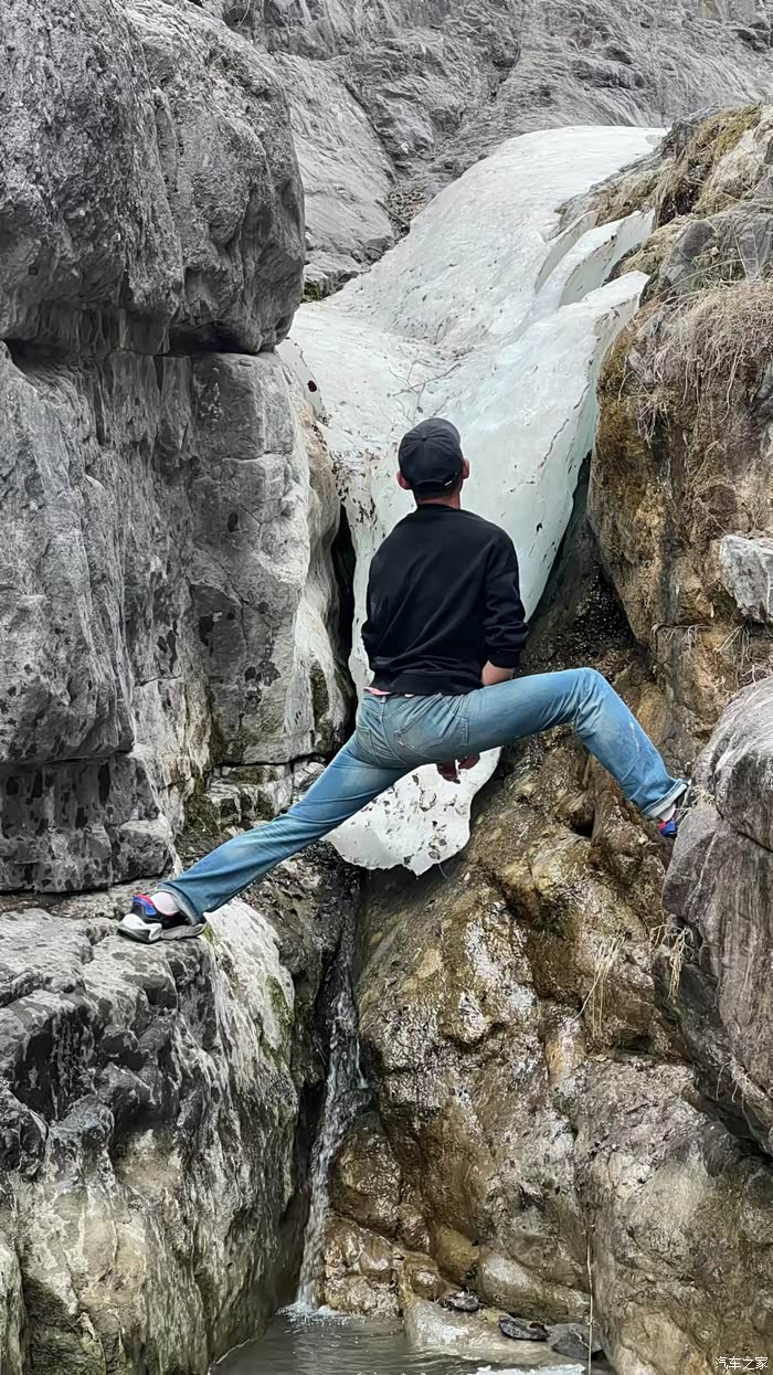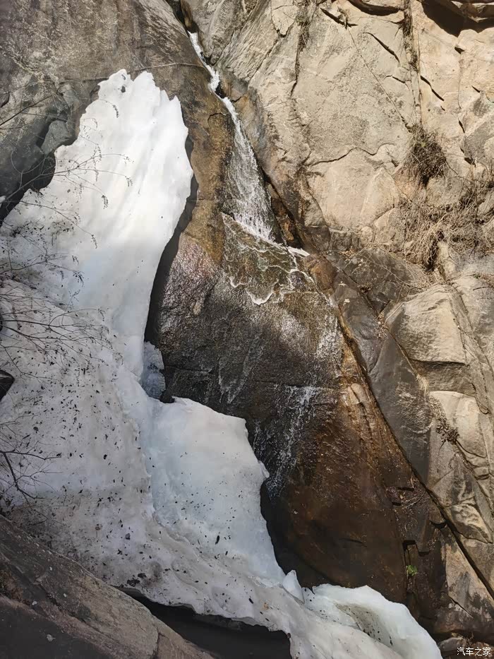 看到石壁上白色的冰了吗?这可不是人造的,4月天,不化的冰,也算是奇景了吧?