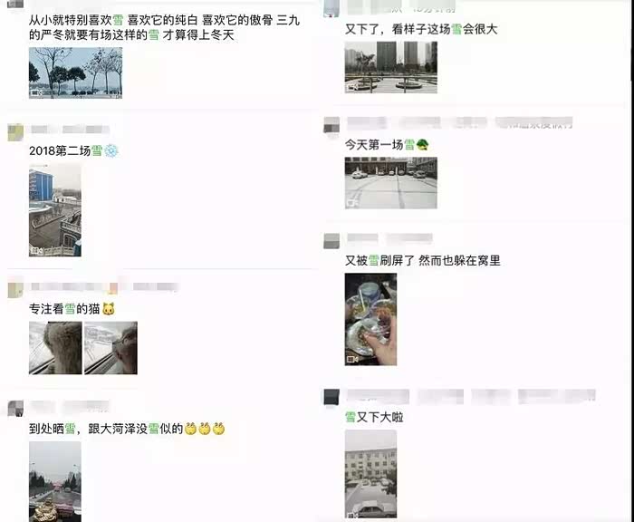 下了点碎雪,朋友圈都乱了,嘴馋的要吃火锅,炫富的要穿貂,臭美的要拍照,矫情的要写诗,单身的要找人散步,浪漫的要堆雪人,闲不住的要打雪仗,秀恩爱的要一起白了头……