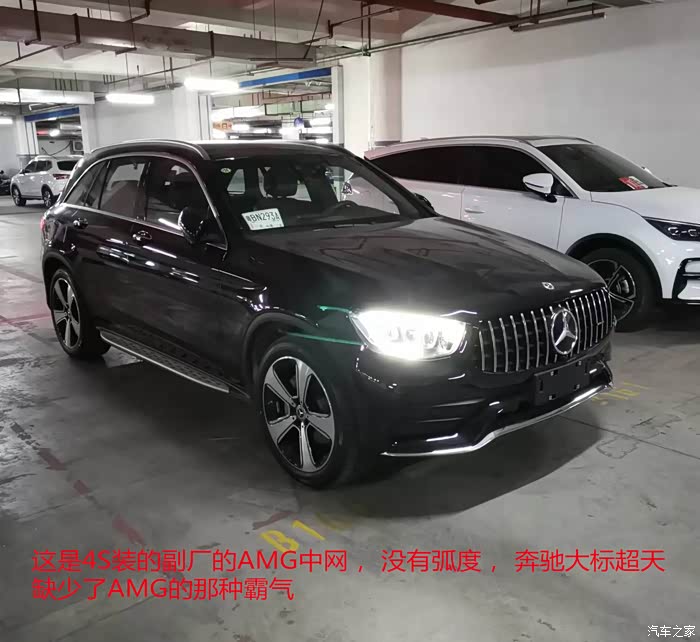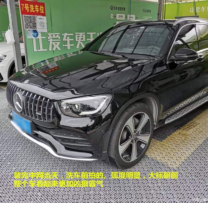 最早改的是中网,提车的当天,我就让4s店把中网换成了GT中网。满天星的确是优雅,但是时间长了感觉太过复杂,有审美疲劳。越是简单的东西越是永恒,所以订车的时候,我就让4S店帮我换AMG的中网。 然而用了一段时间以后,发现这个副厂的GT中网真的有些丑,缺点有两个: 1. 弧度不够,导致奔驰大标朝上,缺少了AMG中网的那种霸气。 2. 中网上的AMG小标竟然是贴上的,实在太掉价了。 于是我就在网上找更加接近原厂的中网。后来在某宝上定了两款号称是完美复刻AMG中网的产品,到货以后,打开包装就失望了, 弧度比我之前的中网略有增大,但是侧面看非常的凌乱。背面做工毛刺太多,而且,而且,,AMG小标的字母都是错的。 对于我这个完美主义者,是无论如何也不能接受的,果断退货。又过了几天,找到一家深圳专门的奔驰改装店,说可以定原厂的中网,价格大几千,一听是原厂,果断下单。3天以后货到了, 但是AMG小标需要从德国发货,又等了7天,全部到货。在改装店,当我拆开包装的那一刻,真的被原厂件征服了,做工真的非常细致,背面没有一点瑕疵, 弧度恰到好处,电镀铬光亮而又低调,背面的材料是磨砂质感,非常高档。 AMG的小标找不到一点瑕疵。当天就装车了,下图就是当天装好中网,洗车前拍的照片。 弧度完美,而且奔驰大标是朝前,侧面看凶狠又霸气