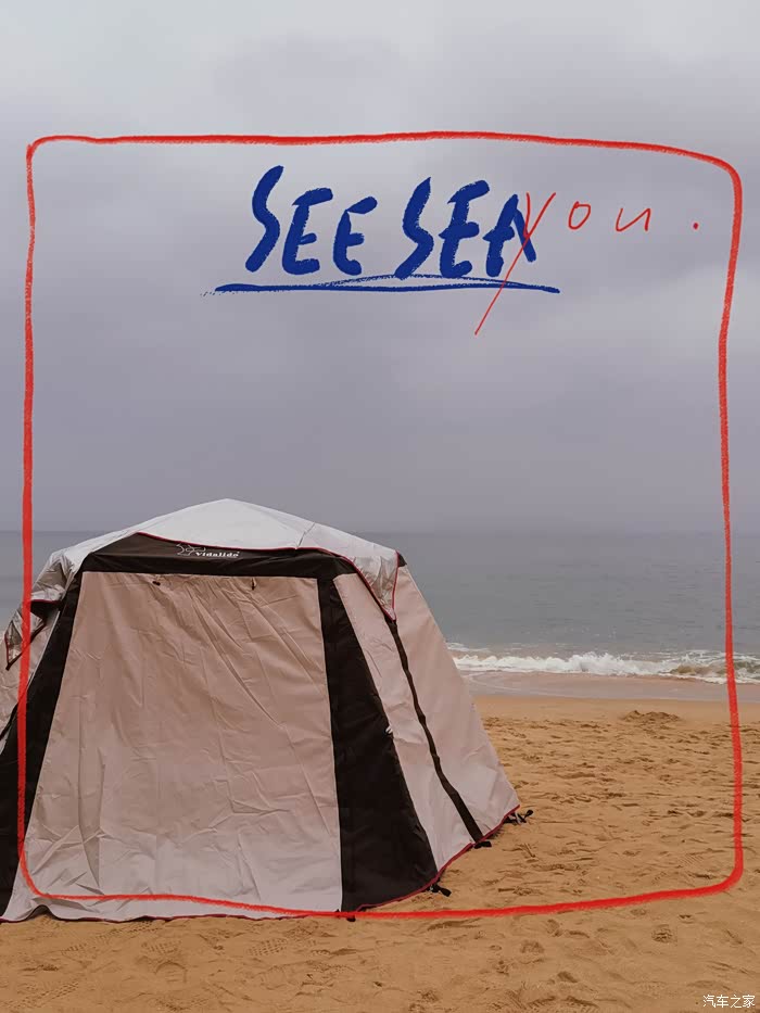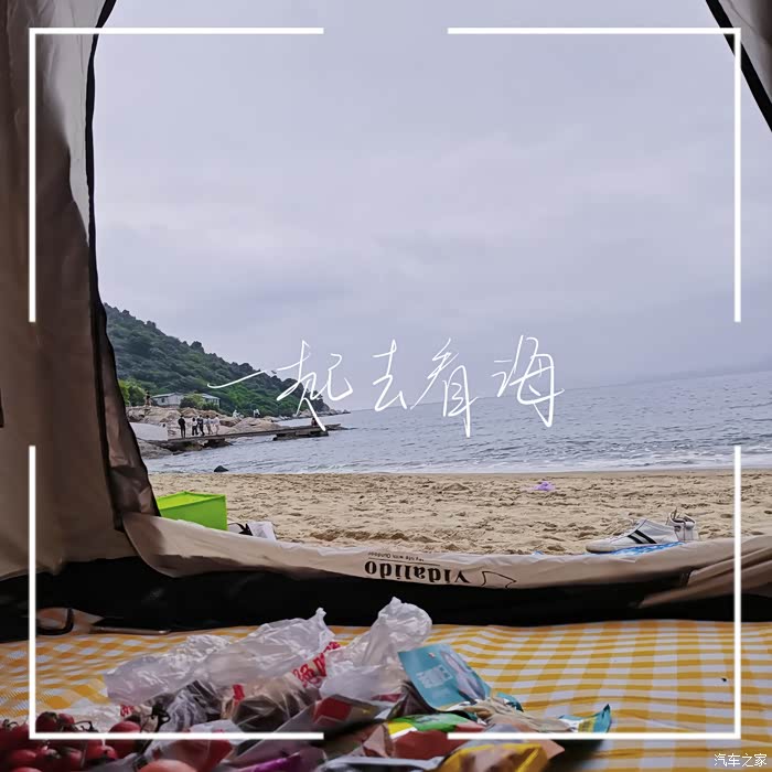 小惊喜:从沙头旁边的酒店可以进入沙滩,刚好车上有帐篷??,然后就在海边搭起了帐篷??吃起了零食😜