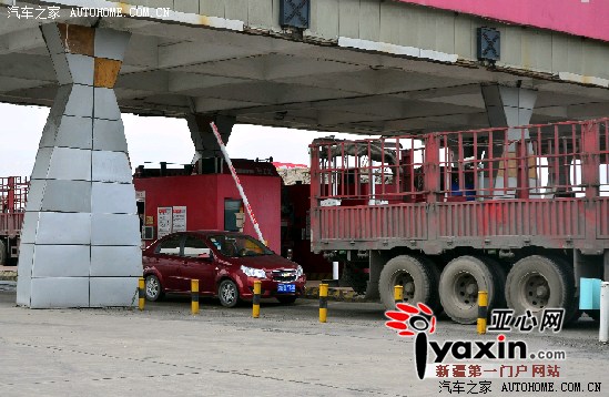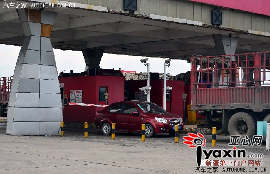 图为5月14日15时55分,吐乌大高等级公路南泉子收费站,一辆轿车紧跟货车后面,准备冲关逃费,两车相距不足半米