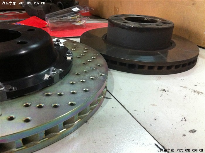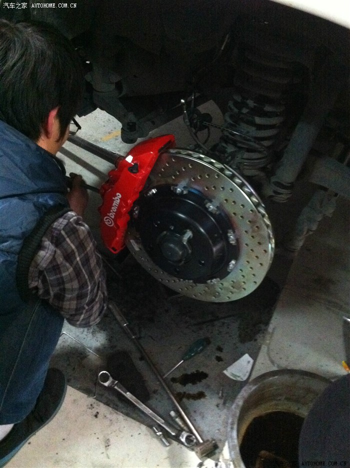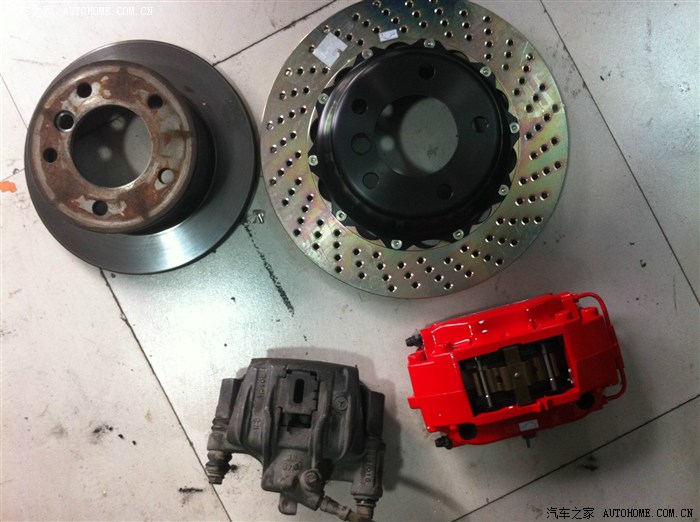 Brembo的刹车有好几个颜色,红黄黑等,黑的我估计大家也不会选,最后还是选了红色配白车。刹车盘也有划线盘和打孔盘,最后选了打孔的。整体视觉效果很满意。