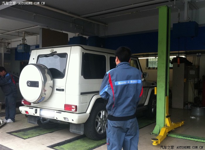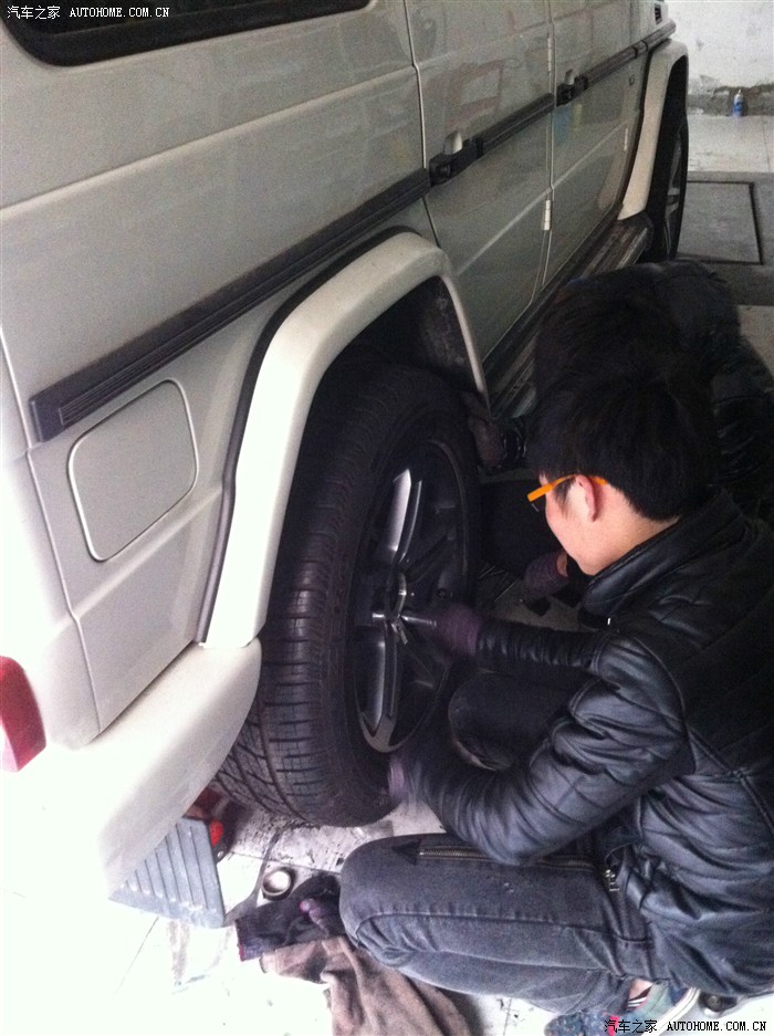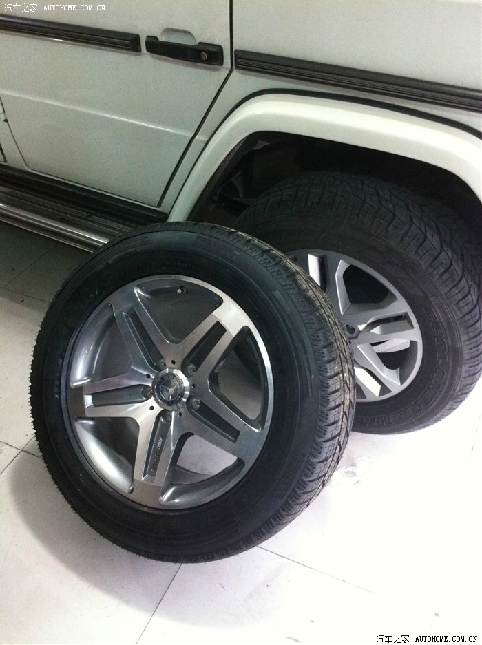 改装过程可谓一波三折,定了刹车,却发现原装的18寸G500轮毂装不进Brembo的刹车,真的差一点点就可以放进去。牵一发而动全身,无奈之下只能选择连轮毂和轮胎也换了。轮毂也考虑过一些锻造的,但最后还是选择了原装的AMG轮毂,拒绝接受一些非原厂的AMG轮毂,毕竟这是轮子,高仿1000多一个AMG轮毂,万一上高速的时候断了怎么办?安全第一,所以坚决使用原厂正宗货。首先想到最新款G63,G65的轮毂,4S里1万7一个轮毂的价钱还是有点贵,虽然说是可以给点小折扣,但是也便宜不了多少,最主要的还要等上2个月左右,从国外发来。毕竟原来只是想换一下刹车而已,这样算下来再加轮胎,又是不小的预算了,而且刹车都等着装了,要还等上那么长时间。。所以继而选择G55的19寸轮毂,四处打听,最后终于在上海打听到了有4个AMG轮毂现货。于是第2天早晨马上开车前往,为了再怕装不进,去的时候带上了Brembo的刹车,装的进就买。然后在上海直接购买好轮胎,做好动平衡,下午赶回桐乡某店改装Brembo刹车。