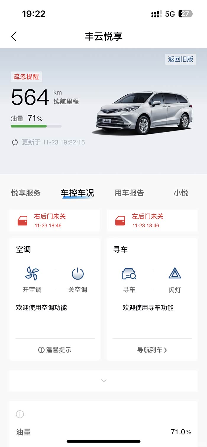 刚刚看App说车门没关,吓一跳。跑下楼看都关好了~