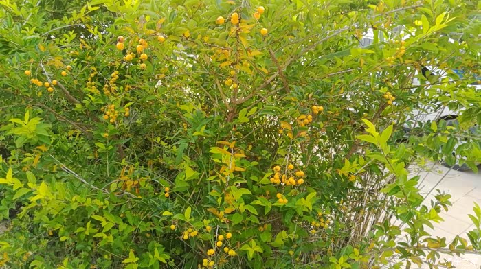 假连翘花朵美丽,果实也是十分漂亮,当假连翘结果的时候,果实会悬挂在枝头上,成熟的时候颜色一般是金黄色或者是橘红色,富有光泽,就像是一串串金黄色的珍珠吗,由于果实观赏期很长,所以它也是一种十分重要的观果植物。