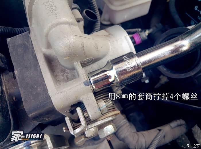 用8㎜的套筒扳手拧掉节气门上面的4颗螺丝就可以把节气门拆下来了!