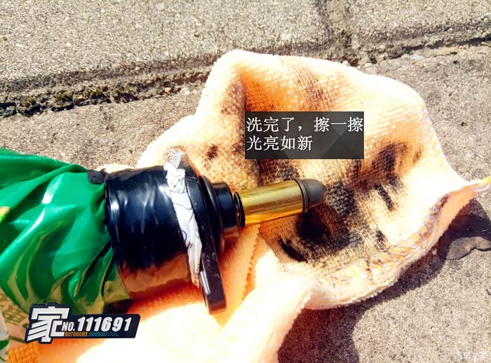 光用清洗剂喷,老油灰根本不能完全的喷下来,只能再用毛巾擦擦干净了!擦擦光亮如新!