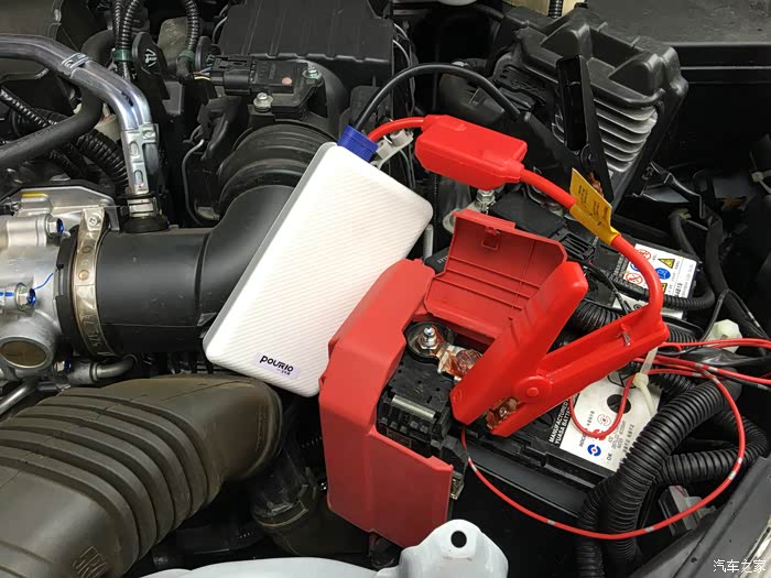接上宝利奥应急启动电源后仪表上的显示灯明显亮了。