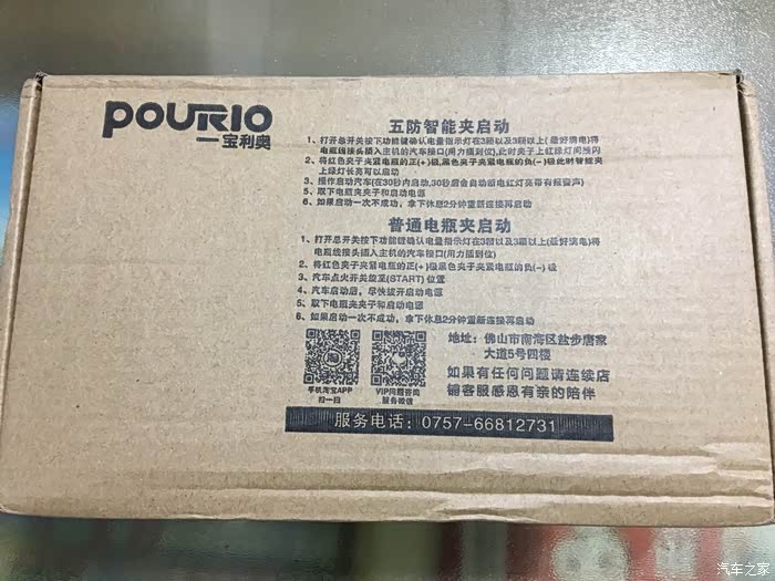 包装上基本说明了应急电源的功能,一模了然,还有地址服务电话跟VIP咨询的二维码。这个比较贴心。