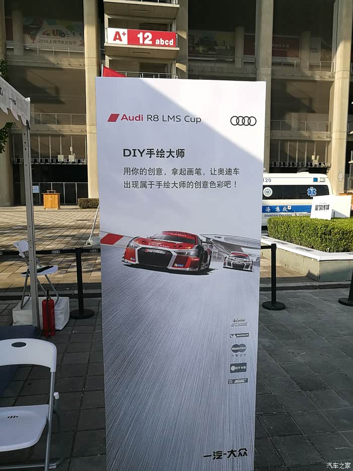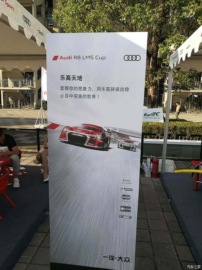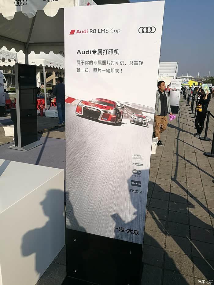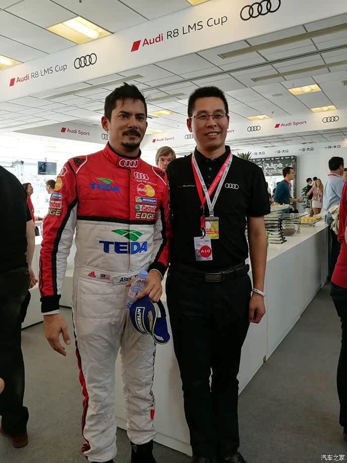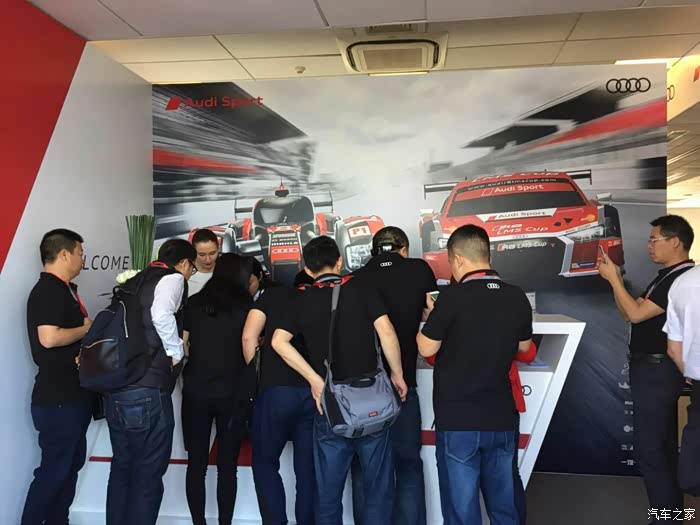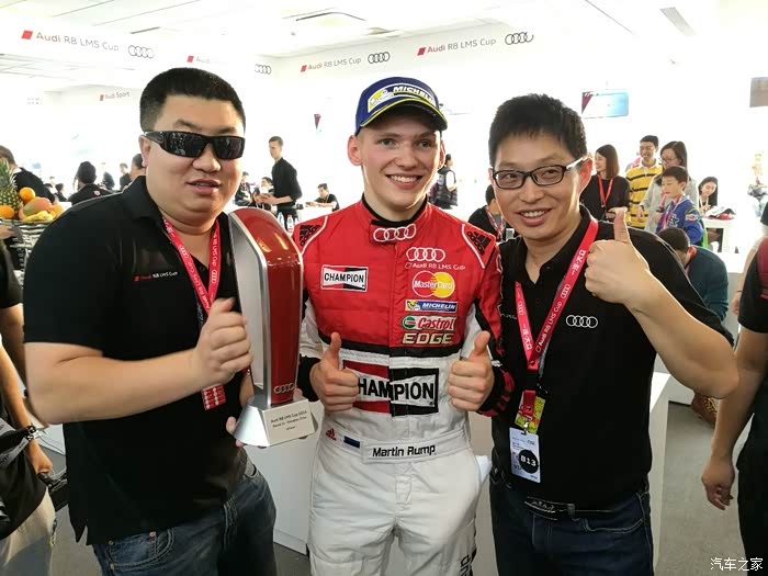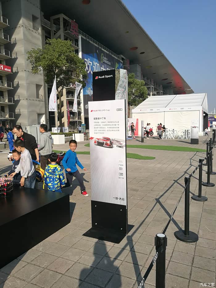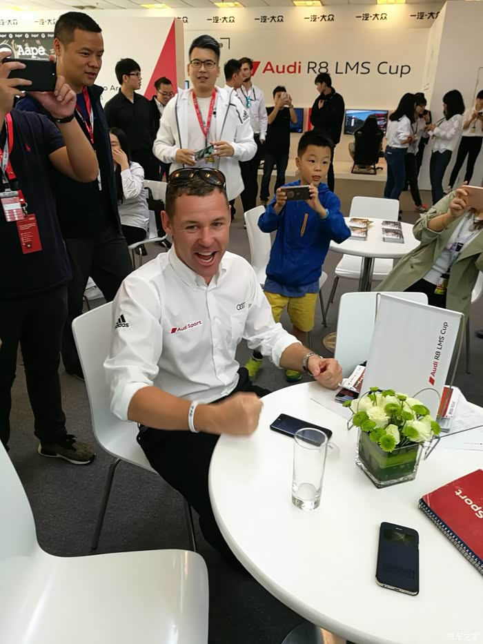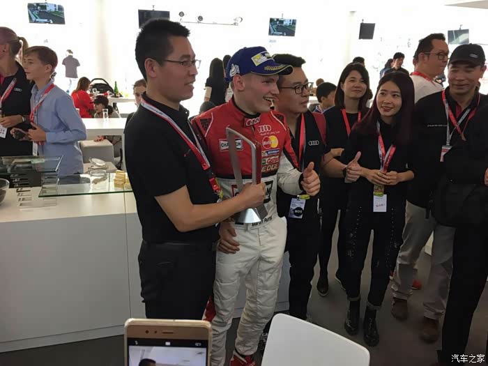 比赛结束从看台下来,又去商务区奥迪设置丰富的与车迷的互动区域进行互动,