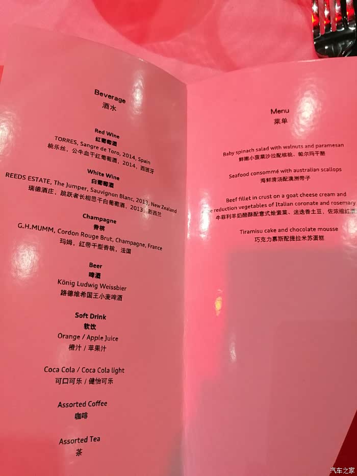 英雄之夜的酒水单和菜单,精致的菜品我就不一一描述了,肯定有参加的车友在论坛里忍不住发图片的