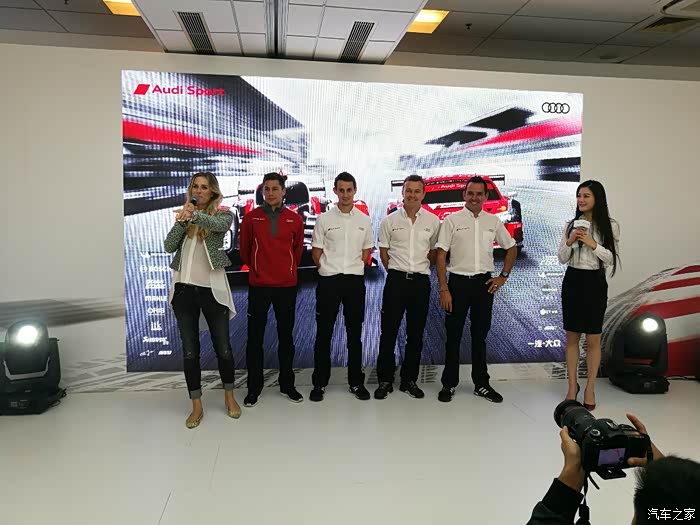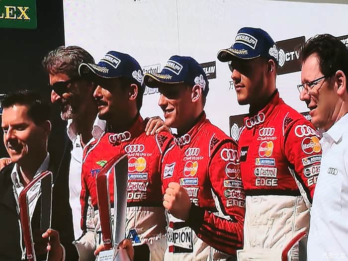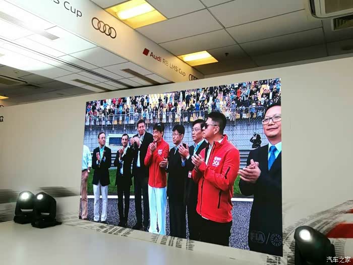 刚进奥迪VIP休息室,就看到美女主持人,邀请4位车手上台,原来是今天代表奥迪车队征战的车手,预祝你们取得好成绩