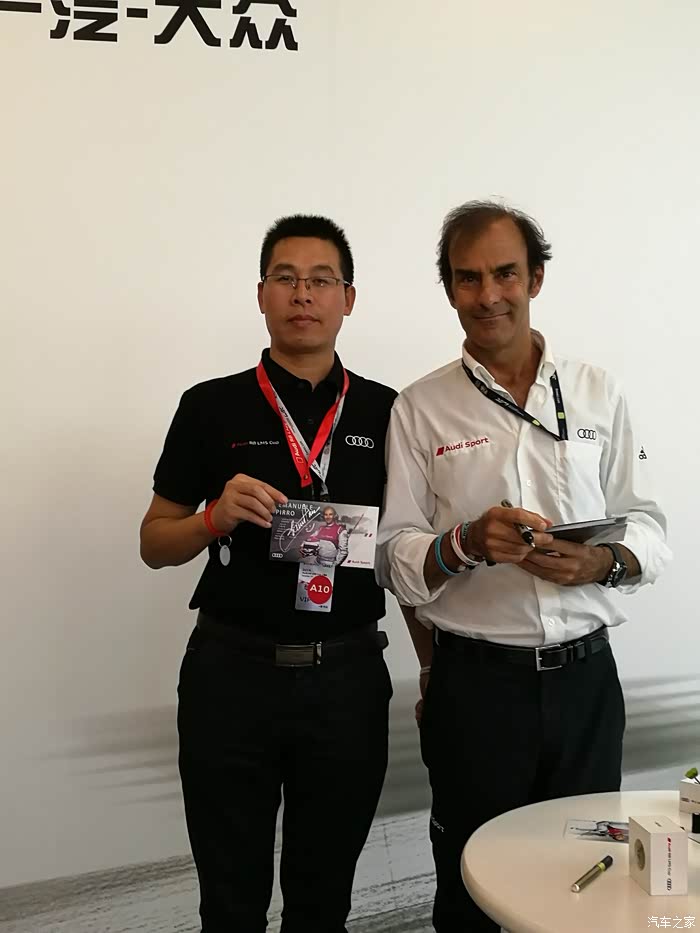 本人有幸获得Audi Sport传奇车手埃曼努莱.皮罗亲笔签名并与之合影留念