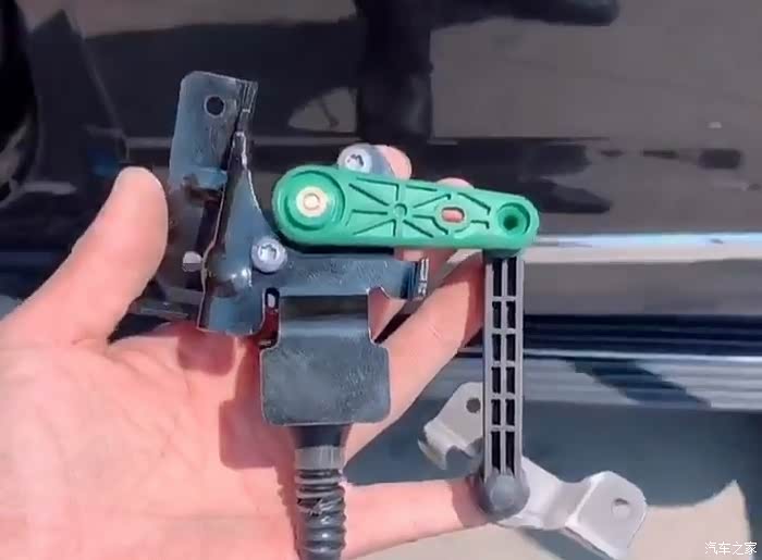 大灯高度调节支架传感器。以后全靠它调节大灯高度了。高配随动大灯在中控屏中没有数字滑块调节了。