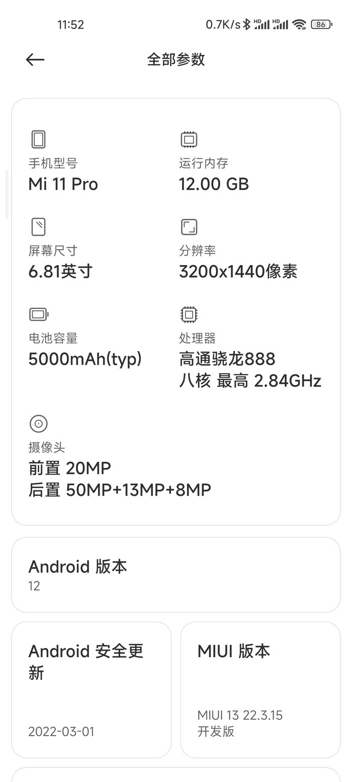首先看下我的手机版本号,MIUI版本是最新的MIUI13 22.3.16内测版