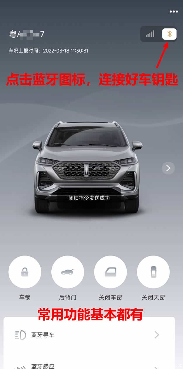 但是也要注意,蓝牙钥匙还是要在有信号的地方才能用,比如在地下车库,没有信号,这个时候蓝牙钥匙就失效了,具体原因搞不清楚,但是我猜应该是要进行 后台匹配吧,在地下车库没信号没法进行对比。