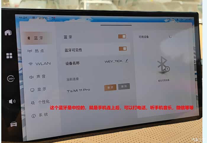 说明一下,车机上设置-蓝牙,连接蓝牙这里,这个地方如果没有连接成功,并不影响后续的操作,这里这个蓝牙是连接中控的,