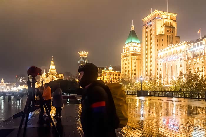 在12月的冷雨中,我和老黄坚守了近2个小时,刚开始只是寒风瑟瑟,后来还飘起了雨。挺佩服从重庆来的老黄,只不过戴了顶帽子就完全不冷啊,而我听小姐姐的话裹了两层厚厚的外套,好处是除了手凉以外真的一点都不冷了,否则非得感冒不可。这一夜,虽很辛苦,可是因为收获了外滩的夜景,终于完美了。