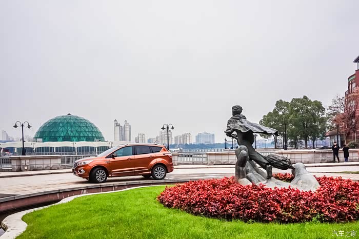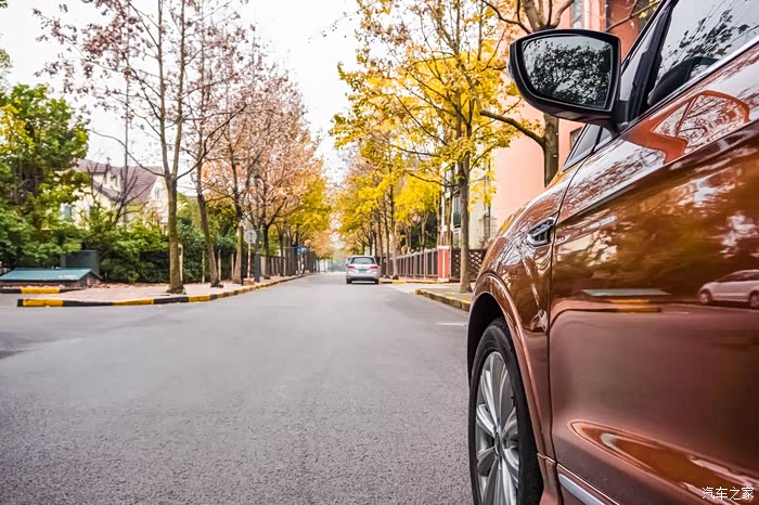 2019款翼虎一如既往给人一股运动、硬派、时尚的视觉效果,峡谷棕的车漆色彩加上美式硬朗的肌肉线条,与松江美术馆的棕色外墙搭配在一起格外的协调。
