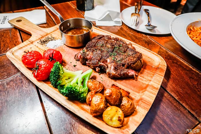 香烤澳洲牛眼肉配时令蔬菜。这道菜只能说一般吧,肉质鲜嫩一些,毕竟牛排平日里也常吃。