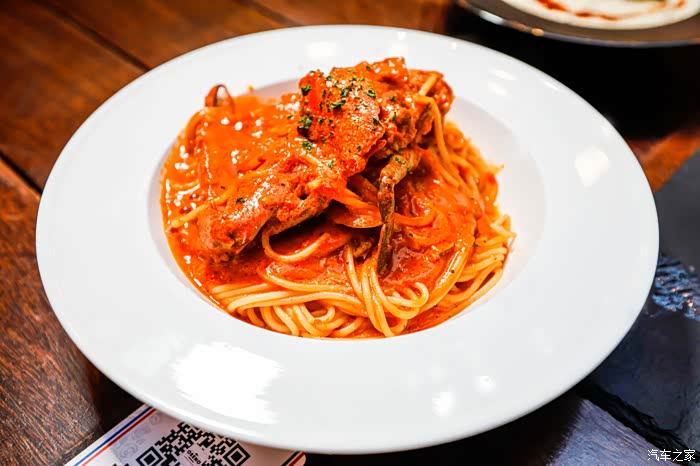 梭子蟹意大利面。意面的量倒是挺大的,可是这奶油味微甜的番茄酱我有些不大适应,只吃了一些蟹肉。