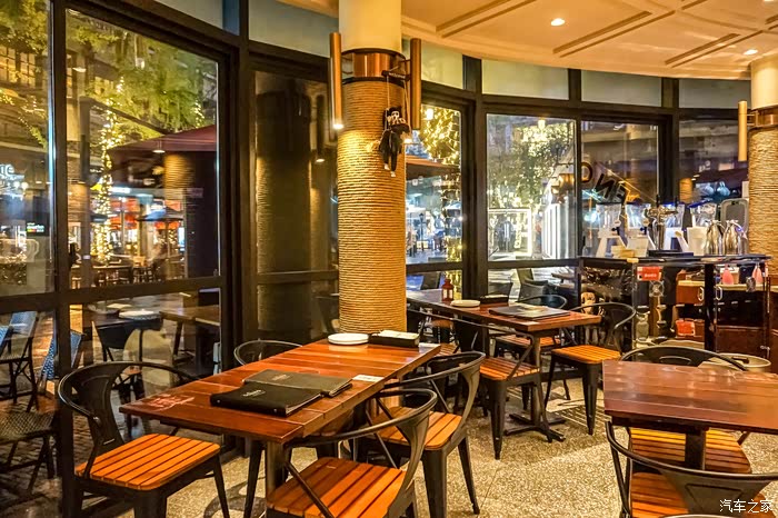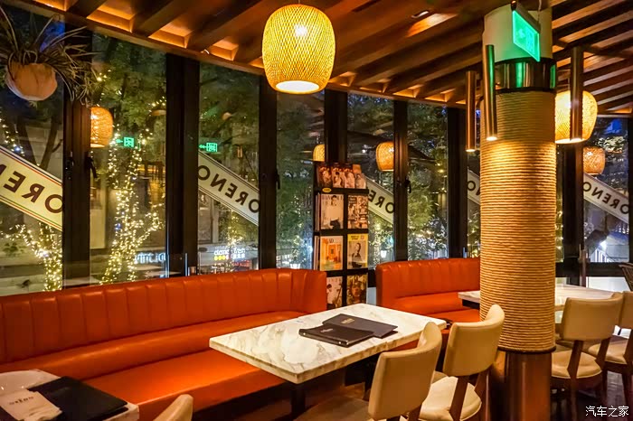 进来后非常宽敞,座椅也很舒适,一开始我们就直接进来坐在了靠墙的中间位置,点菜时才发现不是一家餐厅,这里是美式的。为什么两家餐厅老板心这么大?因为大老板是一个啊。来吃法餐的朋友注意不要走错。两家餐厅的菜品和服务不大一样,法餐要更高档一点,晚上还会有爵士音乐表演等。