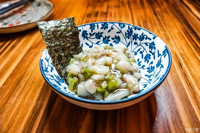 芥末章鱼,看上去有点可怜,几乎不敢下筷子,不过味道确实不错。芥末上那种很清新的感觉,不会让你猛然间泪流满面。