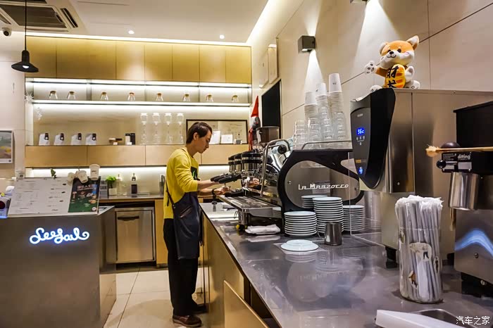 网评里的美女咖啡师没有看到,倒有位可爱的小哥正在忙碌。