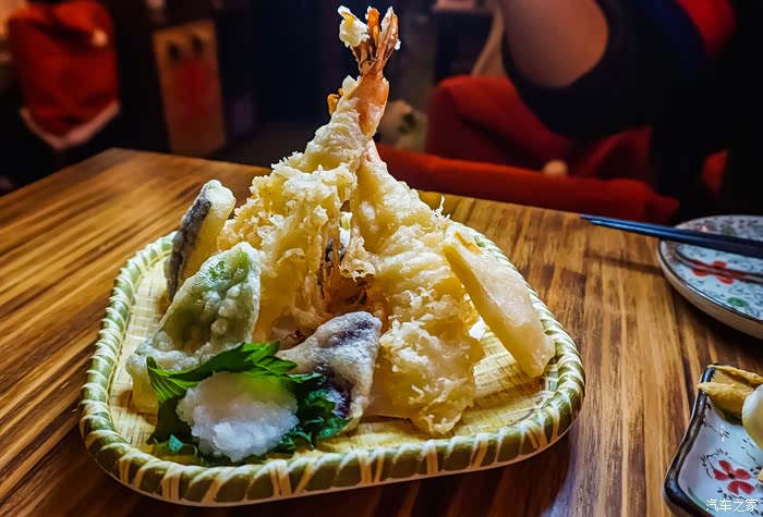 外脆里嫩的天妇罗拼盘,虾和蔬菜都很香甜。