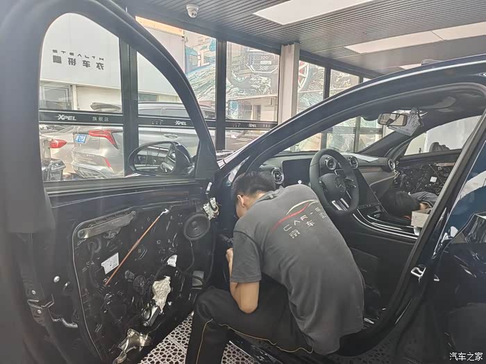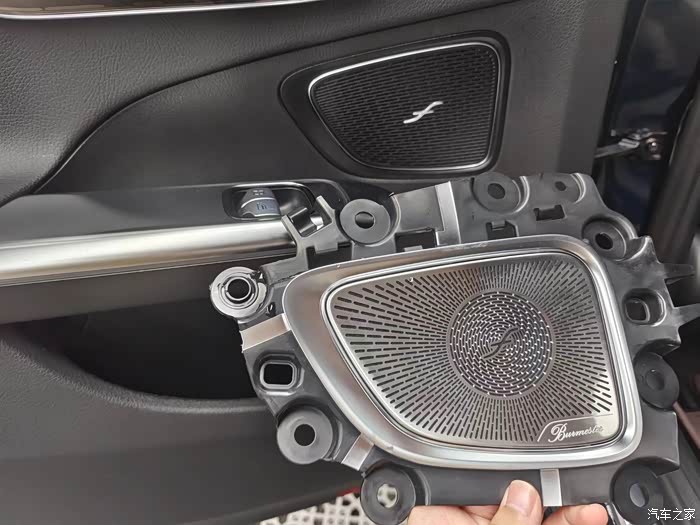 后门也是高中音,对比上一代奔驰C级205的车型来说,老款改装柏林之声是需要在此处开高音孔位安装。而新款车型的特殊设计,替换原车饰板安装,这样升级下来的成本也有所增加。