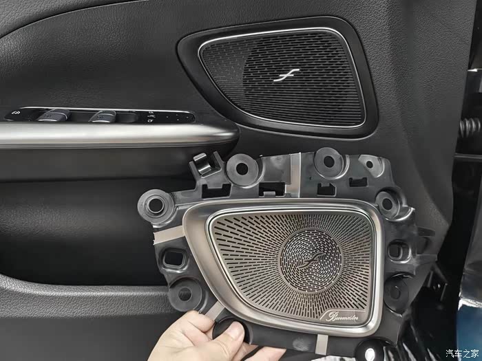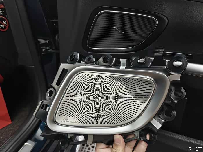 而前门依旧是A柱下方的高音,车门中音的分布,不带小柏林的车型高音没有LOGO,及喇叭罩也非金属材质。
