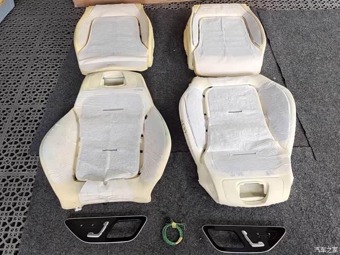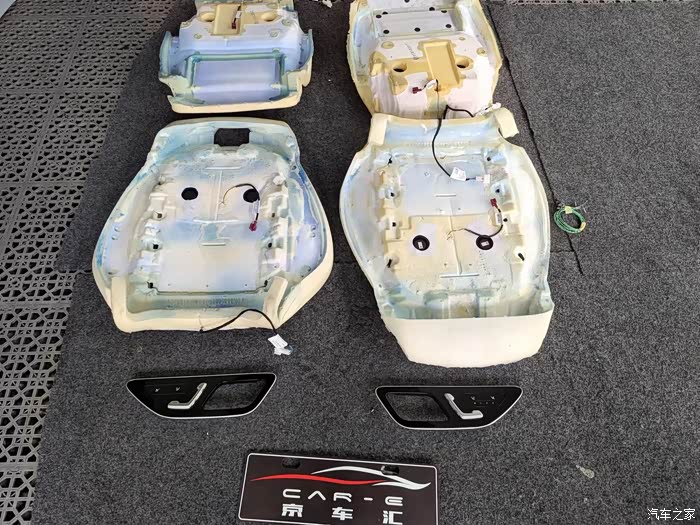 原车前排通风加热,海绵带孔位,带风扇,带加热垫 都是原装的,所以原车加热垫拆除,开关回收掉。