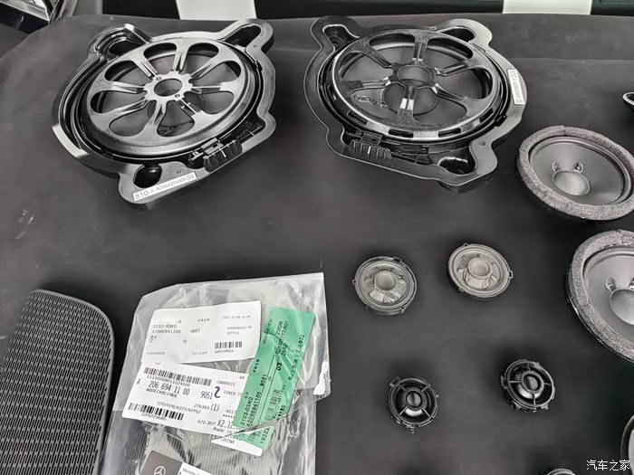 脚底低音两个,原车只有5个喇叭,四门中音加一个低音 别的喇叭没有 ,真是坑啊,不得不服奔驰的这骚操作。专门坑有钱人啊。