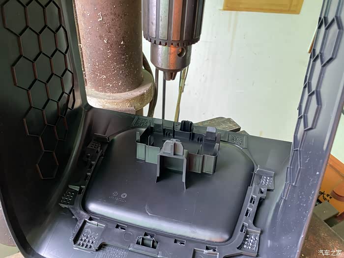 开孔位置,感觉装这里最方便,这个胶件在左右2侧各有一颗螺丝,拧掉再向外拉就出来了