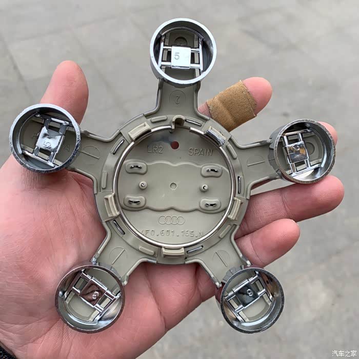 其实真的不是虚荣啊,大众没有原配66.6中心孔的盖子,而且五爪版本的大众盖子都是山寨的,做工比较差,索性就用奥迪的吧,反正一家