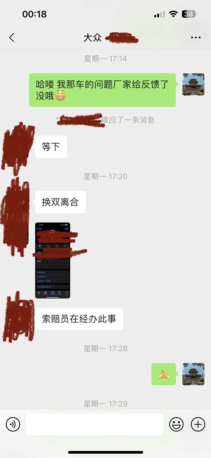 而面临即将过保的情况,我上周到4S店非常强硬,要求进行检测和数据上传厂家,这种情况绝不可能是正常的,最开始售后不愿意,我就说那我只好把4S店门堵了,告诉每一个准备买你们车的人,你们处理问题的态度和方式,以及大众的质量。