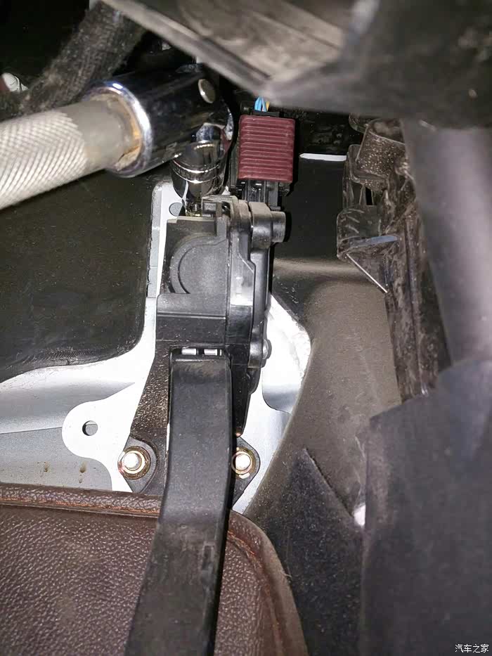 油门踏板螺丝,调油门的时候建议把这颗螺丝拆下来,我也调了油门踏板,以前有两公分的虚位,现在轻点就有油门,建议调,调完后车好开多了。