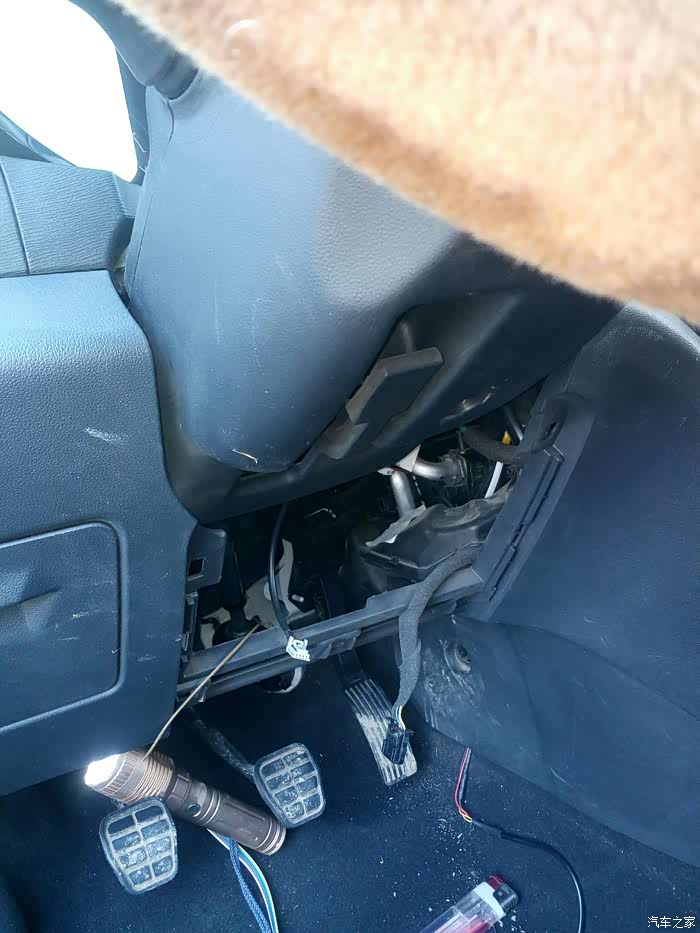 看到论坛里车友“hacker0501”的定速巡航改装,我本来还在等春天屋的无损改装,犹豫了下。后来又看见车友“晴天_艾3”的定速巡航改装,我再也坐不住了,立马上手拍了一个模块回来试试。收到模块就要过年了,没有时间安装,蠢蠢欲动的心压了好久,终于到了过完年。初九拜年回来看看天色还早,就上阵了。油门踏板拆下来时我调了油门虚位,以前不想调,调好后好开多了,强烈建议各位车友调。我准备简单点,接一个按钮,高速上歇歇脚用,自己的车,整。准备了拆油门踏板的长套筒,10个的。套筒万向节,以上两位车友车速是电脑cpu风扇插针,我没有,我就看看家里有没用的电器拆开看有插针,就用上了。安装过程中不断参考两位车友的照片,在此谢谢两位了。好了,话不多说,上图,用手机发帖,图片位置没有排序,各位车友凑合着看吧!欢迎指导!