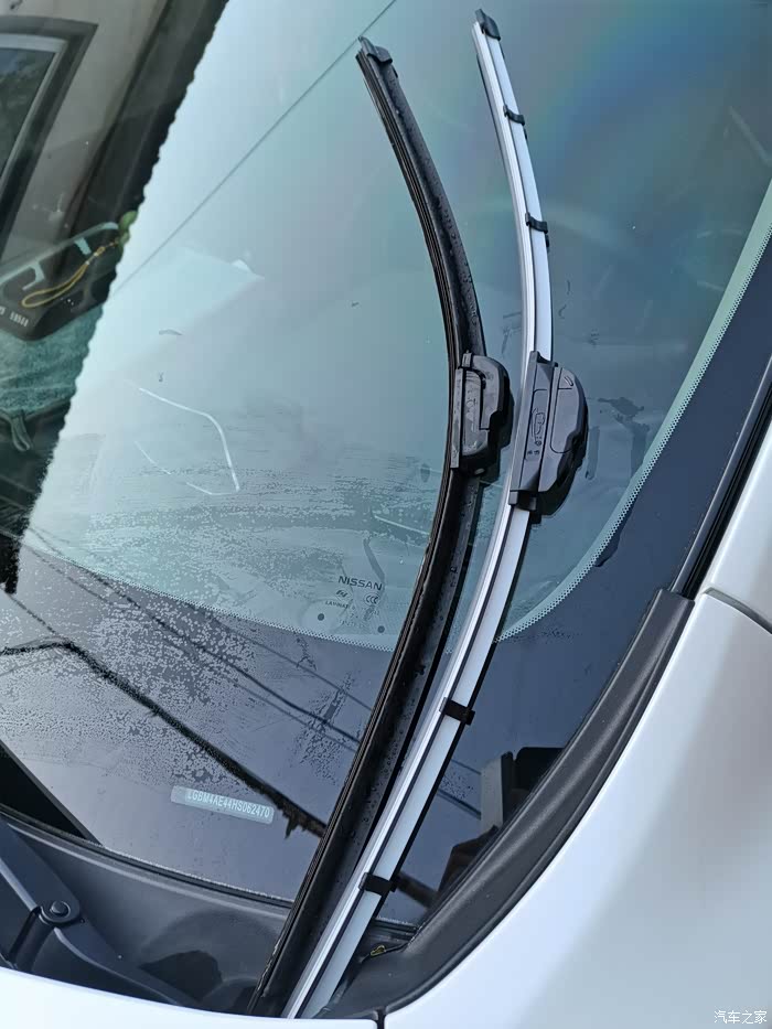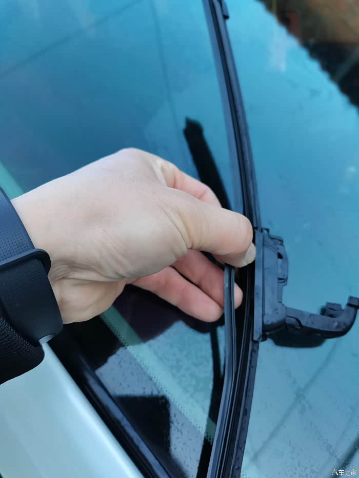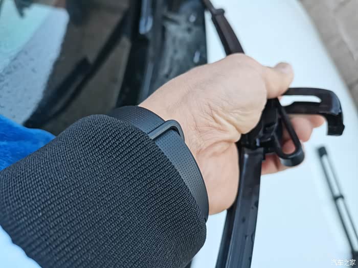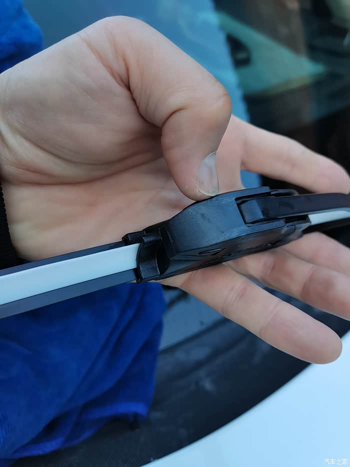 将旧雨刷器拆下来,非常简单,将雨刷器的卡口用力下,按接着向上轻轻的拽起,就可以将旧雨刷器拆下来,这里要注意防止雨刷器不小心回落,崩到前窗玻璃就会砸伤,所以拆下来以后,一定将雨刷器用支杆包裹起来,轻轻的放到玻璃上,防止击碎玻璃,接着就是将新的雨刷器按照卡口对准了以后,轻轻的用力下拽"咔"的一下,新的刷器就安装成功了,用同样的方法将另外一侧的雨刷器也要进行更换,就这样,大约十分钟的时间,轻松的将旧雨刷器拆下,新印刷器安装成功,然后喷水试验一下新的雨刷器,确实刷的比较干净,也没有任何的异响,这个冬天再也不用担心雨雪天气影响到我们行驶的视线了,真是自己动手丰衣足食啊!