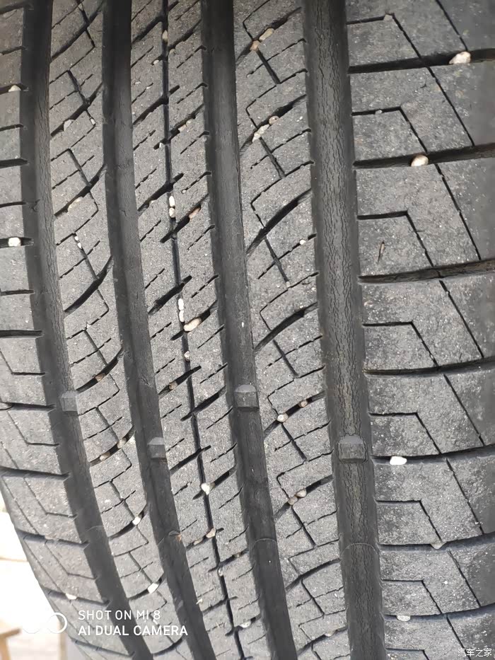 八万公里的轮胎虽有部分裂纹,但是还是比较耐磨的,原厂的车胎是佳通的优点就是耐磨,缺点就是胎噪太大了