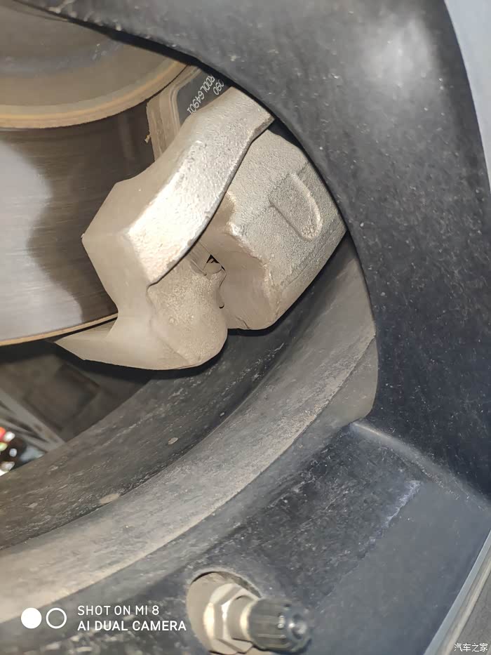 刹车盘磨损均匀,没有一道道的沟,刹车片还好,没有达到需要更换的时候