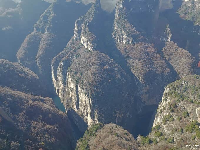 从缆车上俯瞰八泉峡的峡谷深壑。