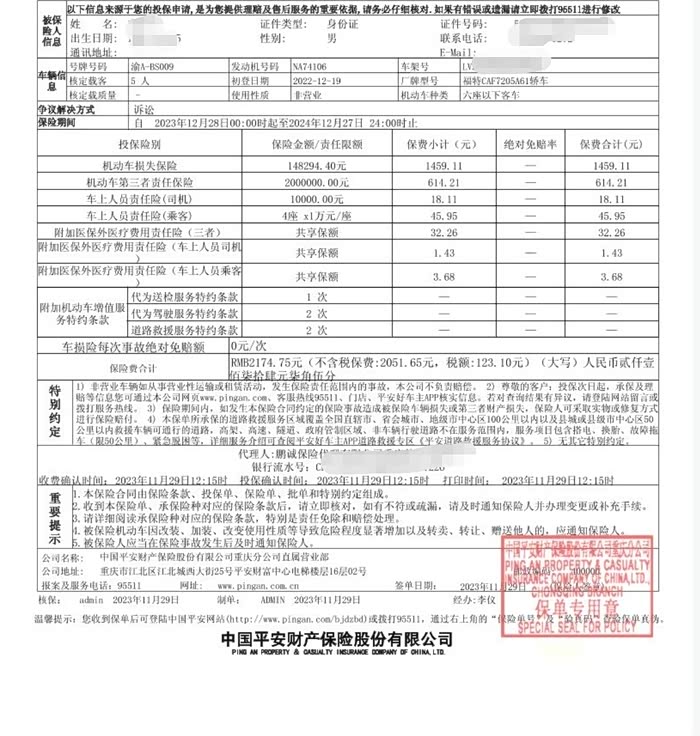 我在去年年底为车辆续保,包括交强险和车船税1210元,商业险包括200万的三者险和车损险。考虑到我经常自驾出游,我还专门为全车买了100万保额的驾乘险和医保外用药的保险。这几种保险加起来共计3970元,不过保险公司为我返利了820元,所以最终的保险费用为3150元,保险费用不算特别贵吧。