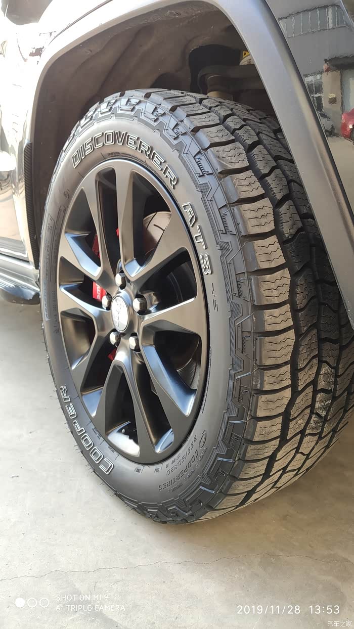 这个是原厂轮毂改半哑光黑+固铂AT3效果