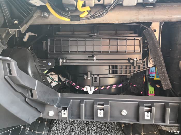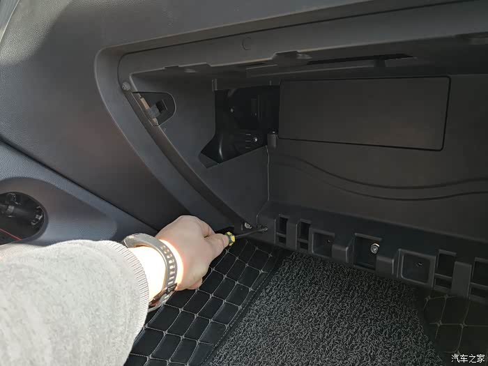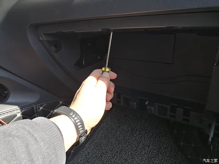 拿掉手套箱后,拆掉下排四颗黑色的螺丝。