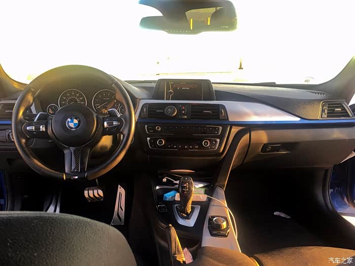 宝马3系的内饰,似乎是褒贬不一的,有人觉着它平庸无味,也有人觉得它简洁大方。我个人对3系的内饰还是持肯定态度的,一台追求运动的车,就应该有这种“简单粗暴”的内饰,不是吗?这台车内饰在许多细节之处做的是非常到位的,比如那根贯穿中控台的蓝色饰条,与外观的颜色交相呼应;三幅方向盘下方和电子档杆上的M标志,在侧面烘托出运动的氛围。中控台偏向驾驶员一侧的小细节也是凸显运动感的重要之处。这台335i的纯黑色内饰与整车的风格很是登对,若换成偏向温馨的浅色内饰来搭配这台短轴3系,就有点奇怪的感觉了。至于配置,只能说是凑合,与“丰富”二字并不沾边,在美国的价格下看着个配置,还是可以接受的,如果用国内落地七十大几万的价格换来这样的配置,就算不能说是男人看了沉默,女人看了流泪,也很接近这种程度了。