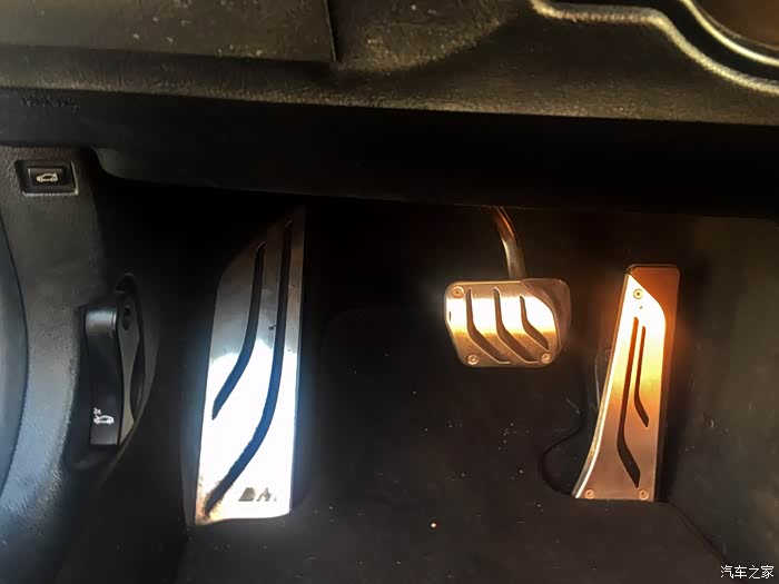 金属踏板很符合运动型车的身份,不但美观,而且兼顾了实用性,比较耐磨。原厂的脚垫质感非常好,不过需要用心地打理。现在市面上比较流行的大包围脚垫确实方便打理,不过在选购时需要留心,脚垫不能和刹车油门踏板“打架”,否则会影响行车安全。