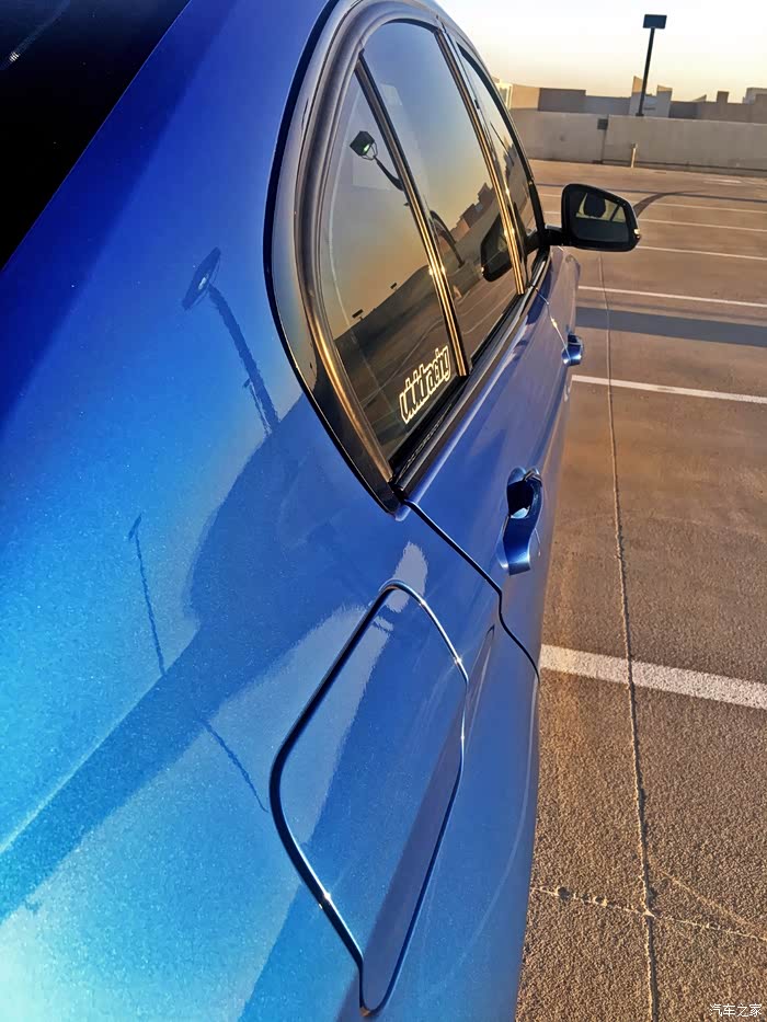 这台美版的三系与华晨宝马生产的长轴车型在外观方面还是很容易分辨的,因为长轴版在C柱上增加了一道镀铬的横线。不过我个人觉得其实不必刻意区别长短轴的车型,因为它们本身都是3系,并且各有利弊。短轴的车型可以获得更极致的操控感受,而长轴的车型则能拥有更舒适的乘坐空间。这一点沃尔沃做的就不错,长轴和短轴的车型一视同仁,不在车身上做一些奇怪的标识。像奔驰那样在C柱上贴一个长轴的标志,还比较好处理,如果不喜欢的话直接扣掉就可以了。而长轴宝马3系上的标记是与车窗上方的镀铬饰条连在一起的,很难处理掉。这辆车的各个部位都透露出了宝马的家族设计语言,比如双肾格栅、天使眼大灯以及霍夫迈斯特拐角。比普通车型增加的M运动套件,让这台335i的运动风格更上一层楼,蓝色也是很有激情的一个颜色。不过我感觉这台车的外观还有提升的空间,还可以朝着M3的方向做一些小小的改动,比如换一个M3的碳纤维后视镜外壳。虽然在国内的长轴3系上安装M3的外观件看上去可能会感觉怪怪的,但是装在这台335i上绝对是毫无违和感。现在宝马的家族设计风格我感觉还是非常耐看的,大气且运动,炯炯有神的开眼角大灯、干练的腰线、有张力的机盖都是外观的加分项。